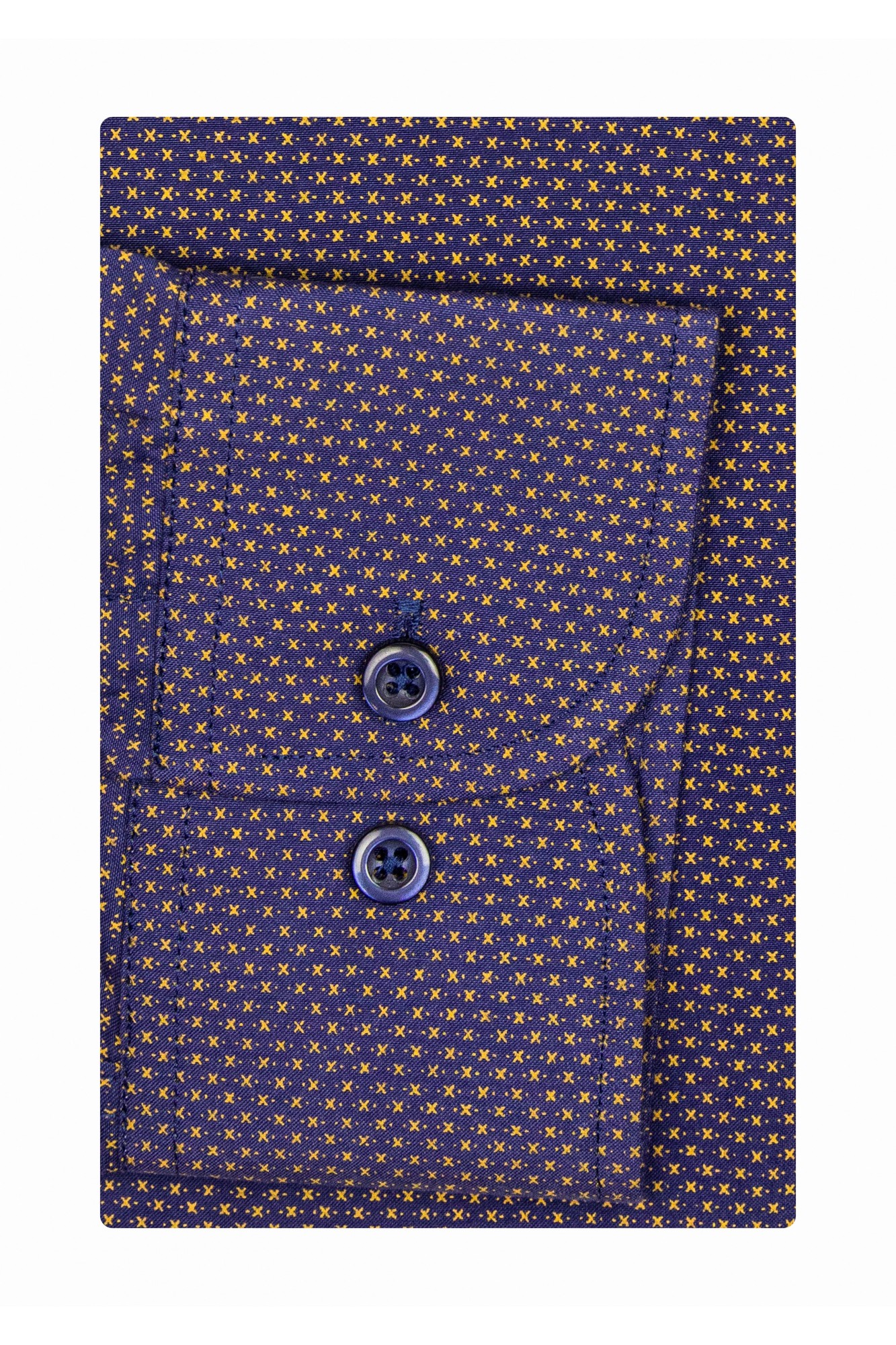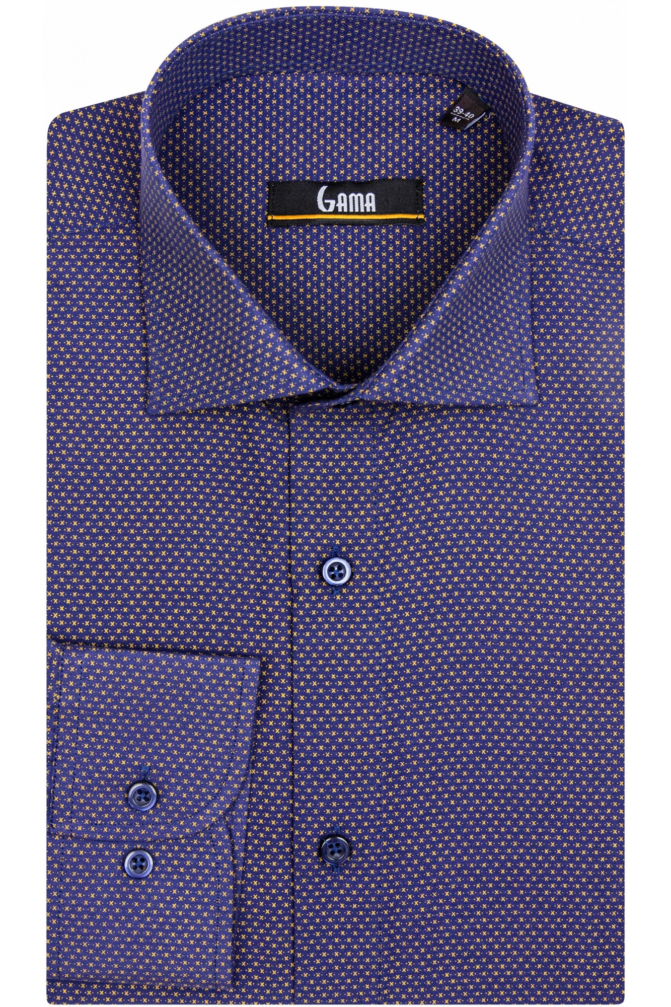 Camasa barbati cu maneca lunga bleumarin cu imprimeuri mici are croiala regular si gulerul clasic. O camasa potrivita pentru orice moment al zilei, fie ca esti la birou sau in oras.