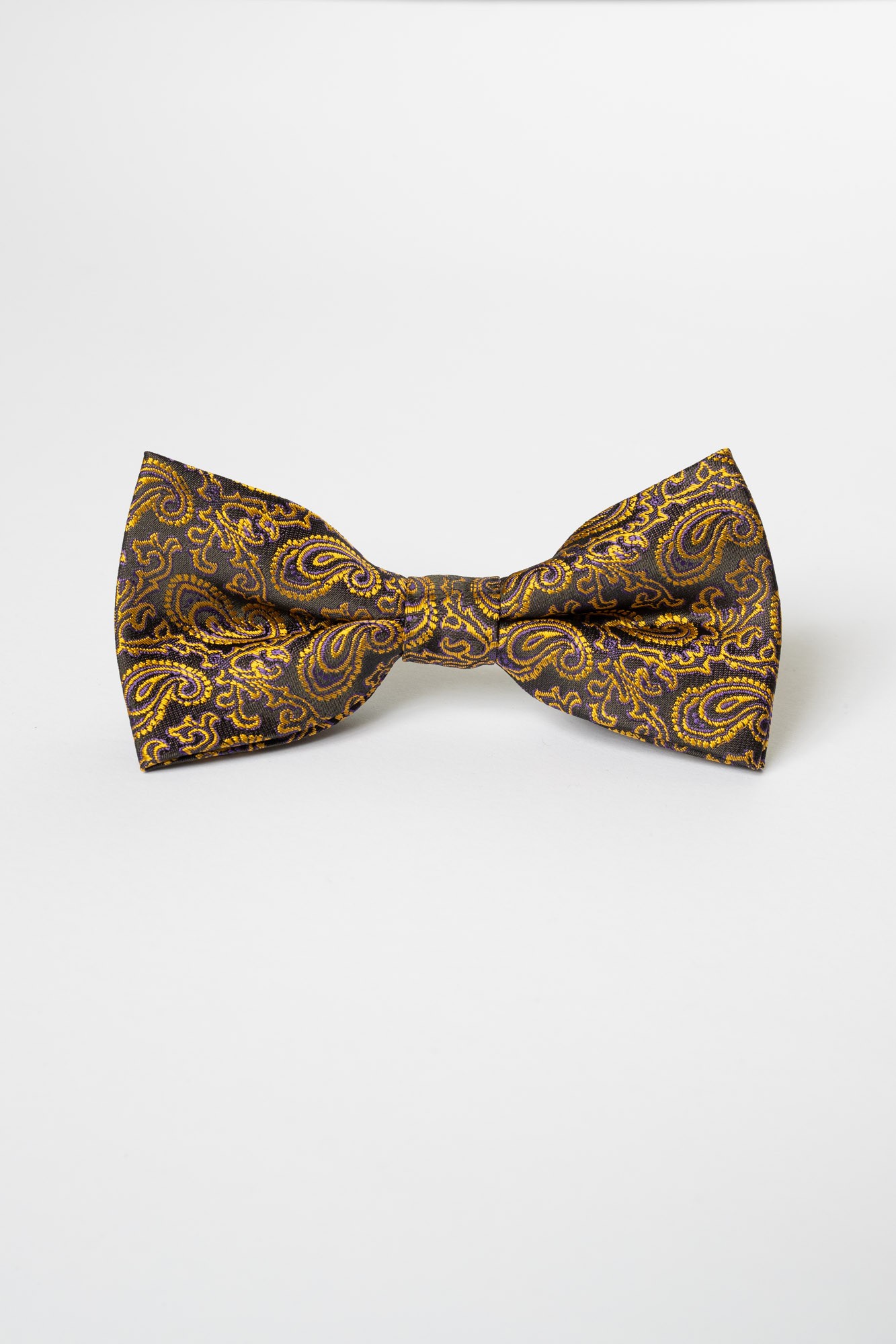 Papion negru cu paisley auru si mov, foarte elegant, ideal pentru evenimente deosebite.